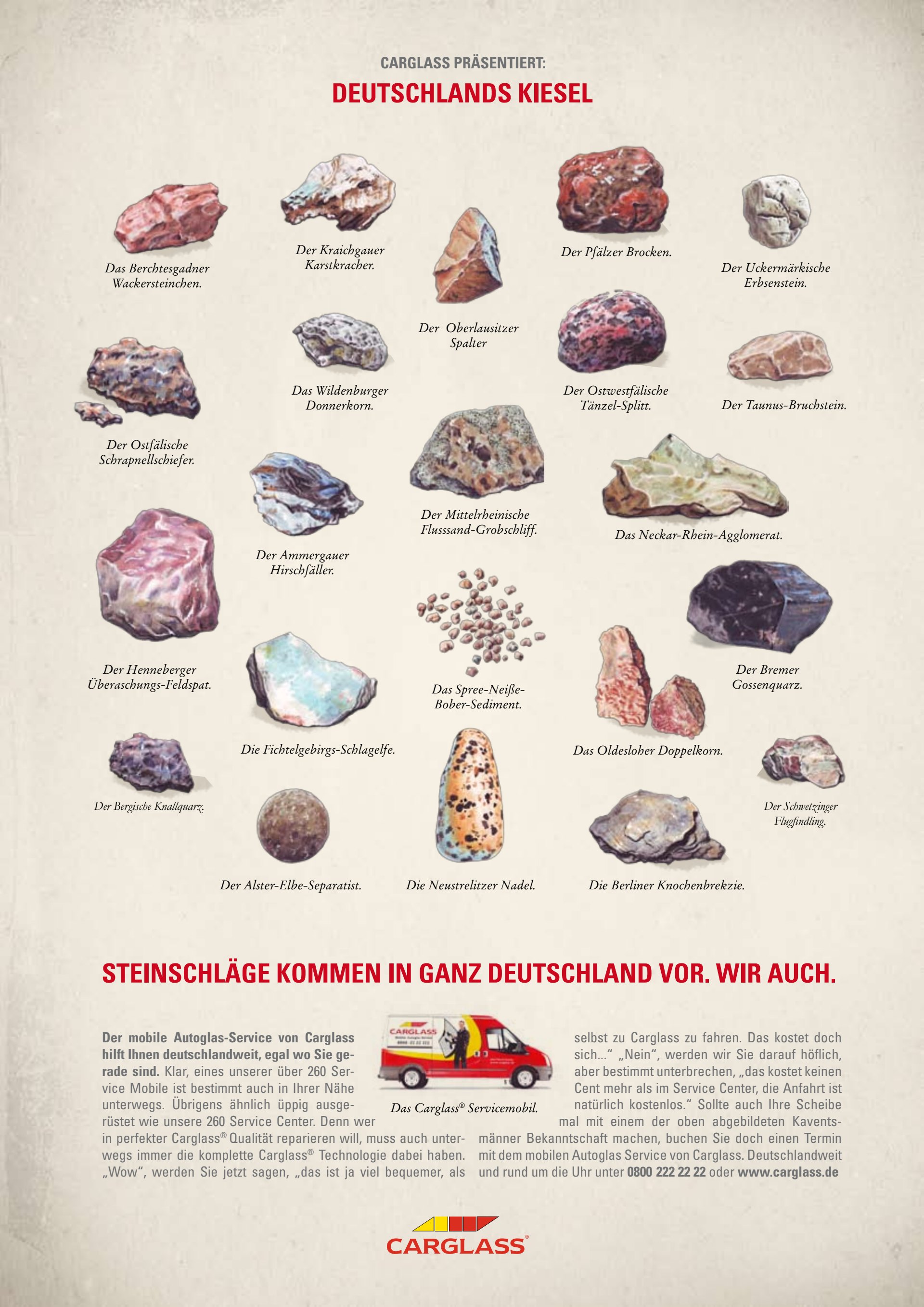 Als Zeichen meiner Menschenliebe verzichte ich hier darauf, die 73 TV-Spots und knapp 300 Funkspots, die ich für Carglass geschrieben und produziert habe, zu zeigen. Die drei Anzeigen scheinen dagegen angenehm unaufdringlich und gänzlich Jingle-frei.