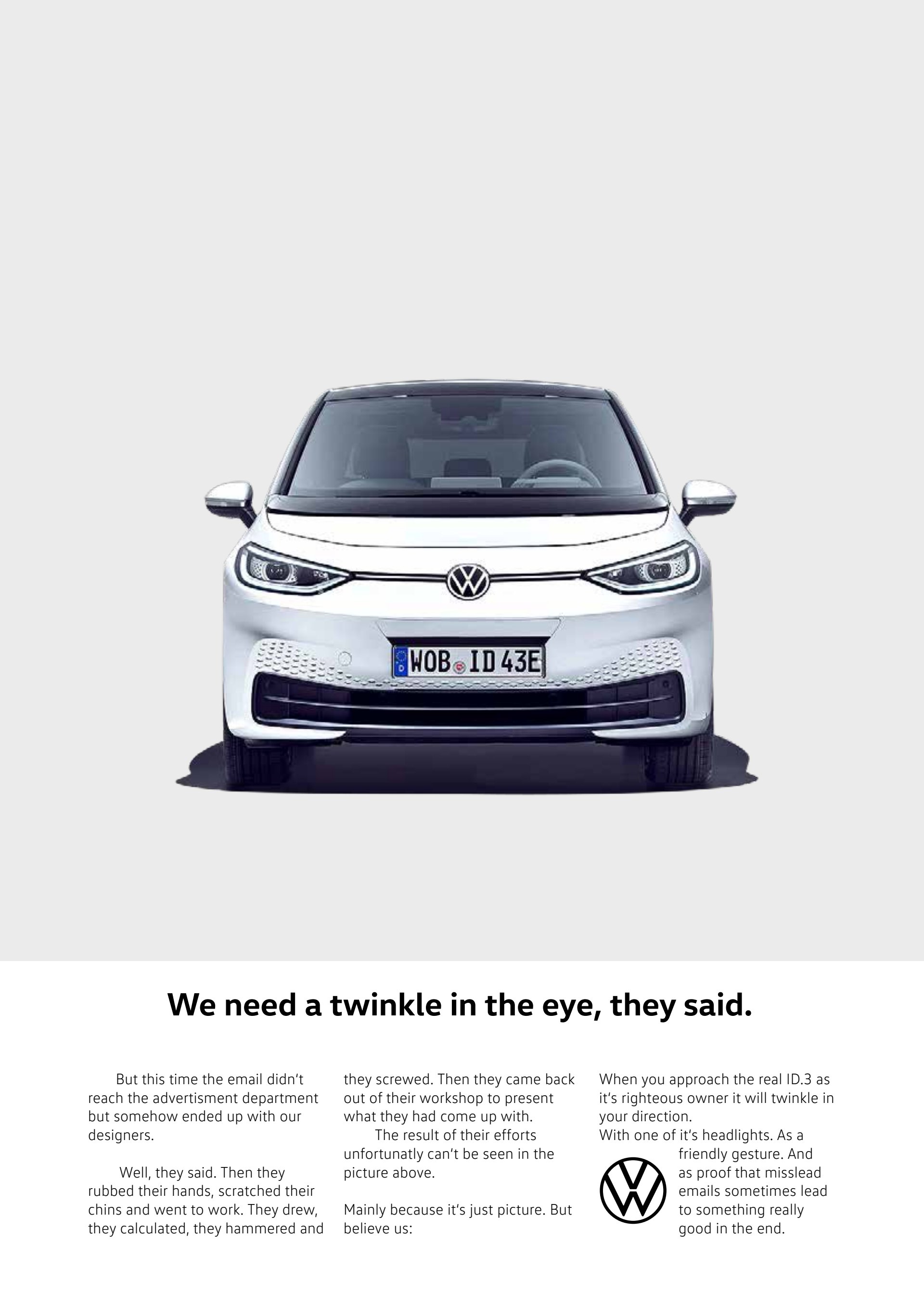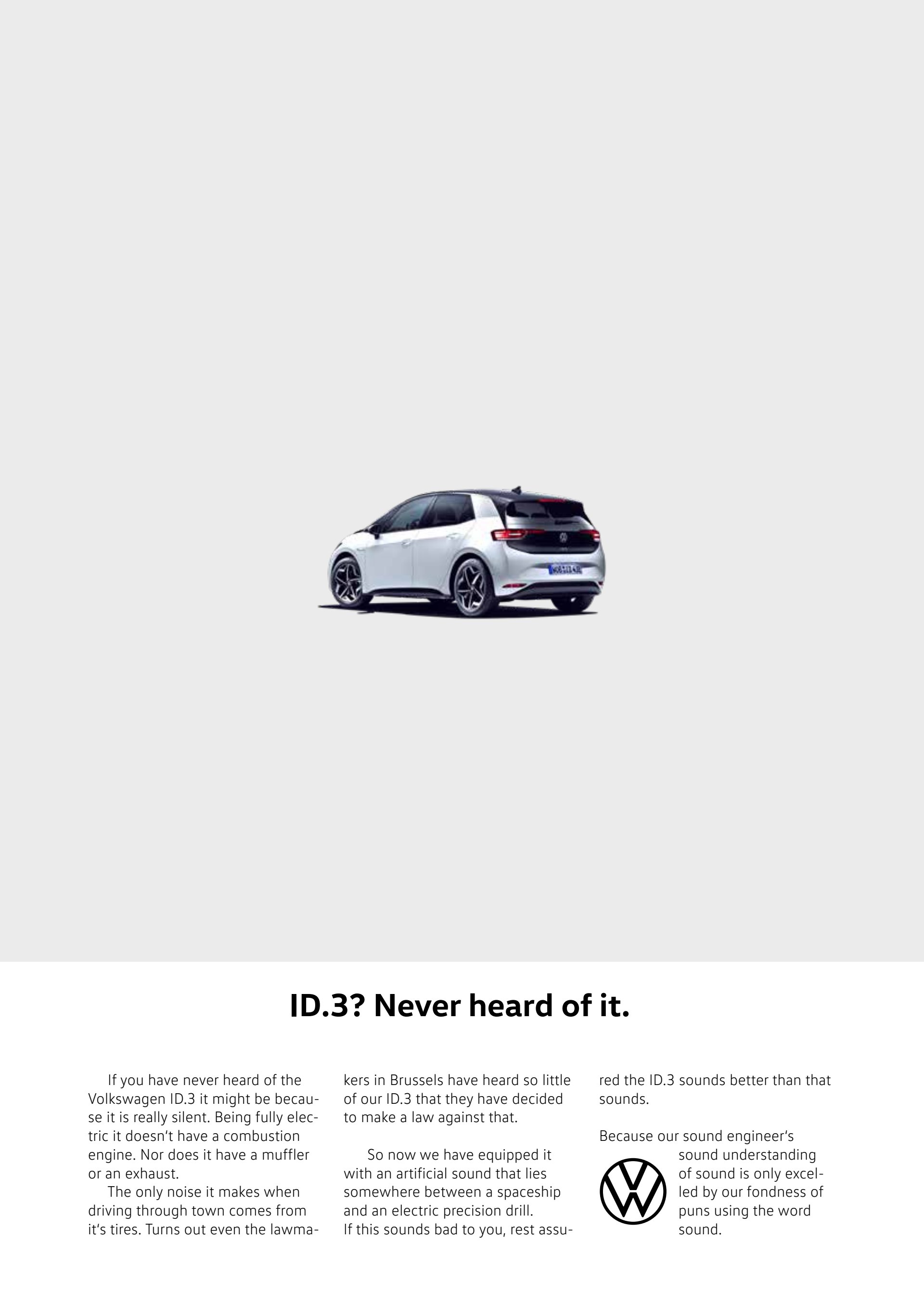Simple pictures and fun to read copies have been selling Volkswagens for a while now. I think this still works.
