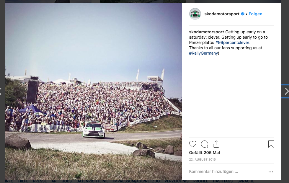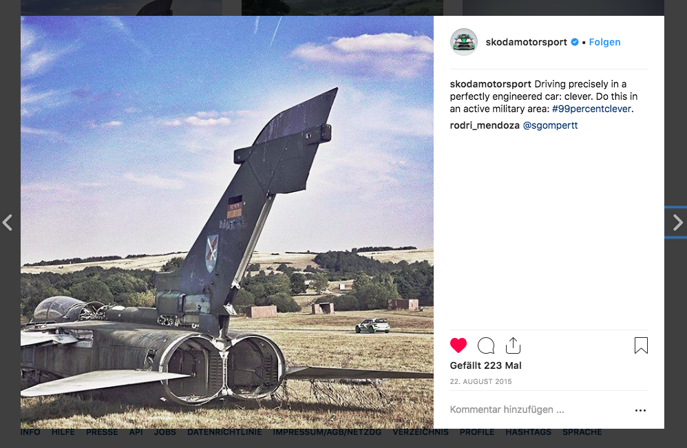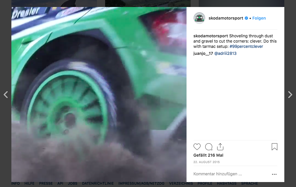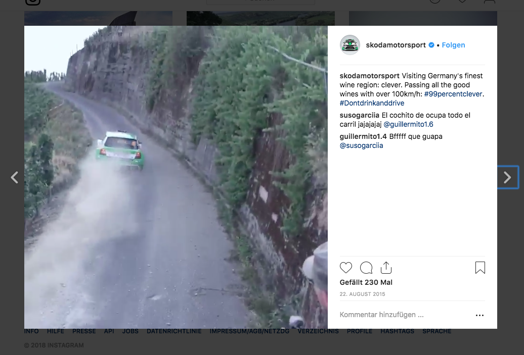 Jeder weiß: Skoda ist “Simply clever”. Jeder weiß auch: Rallye-Fahrer sind das nicht zwangsweise. Um mit über 200 Sachen blind über eine Kuppe zu springen, muss man die pure Vernunft schon ein gutes Stück hinter sich gelassen haben. Also maximal 99% clever sein. Leider war die Kampagne damals auch nur zu 99% budgetiert und nahm so ein frühes Ende.